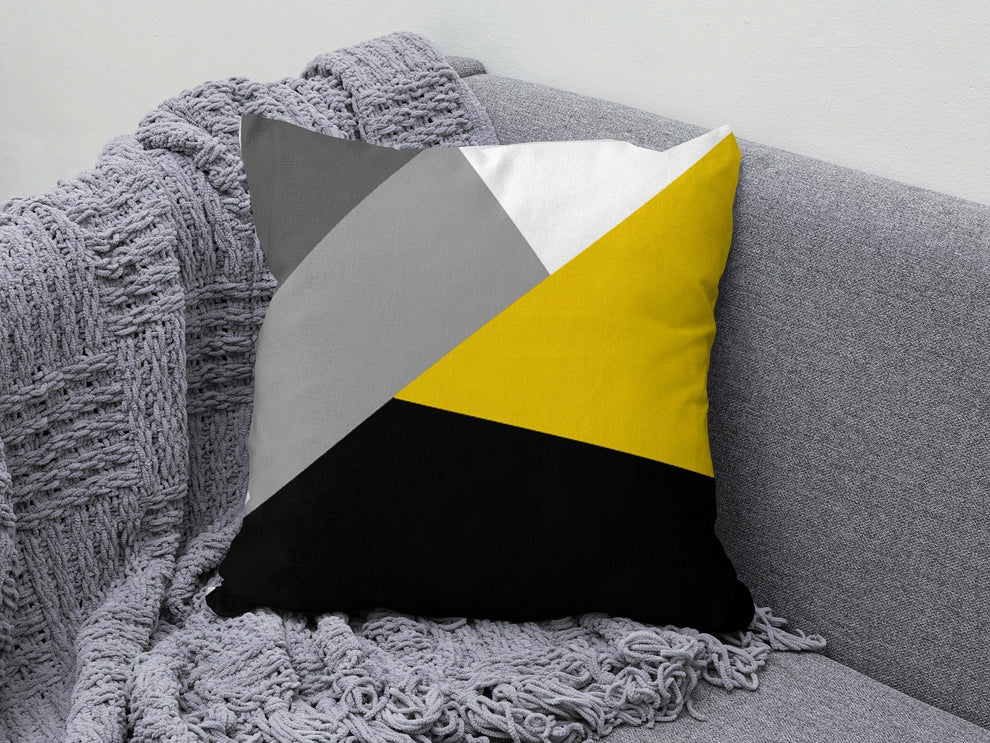 Abstract Geometric Cushion Cover Black Yellow Gray Cushion Case