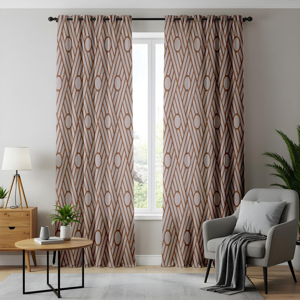 Art Deco Geometric Curtains – Brown and Beige Line Art Drapes