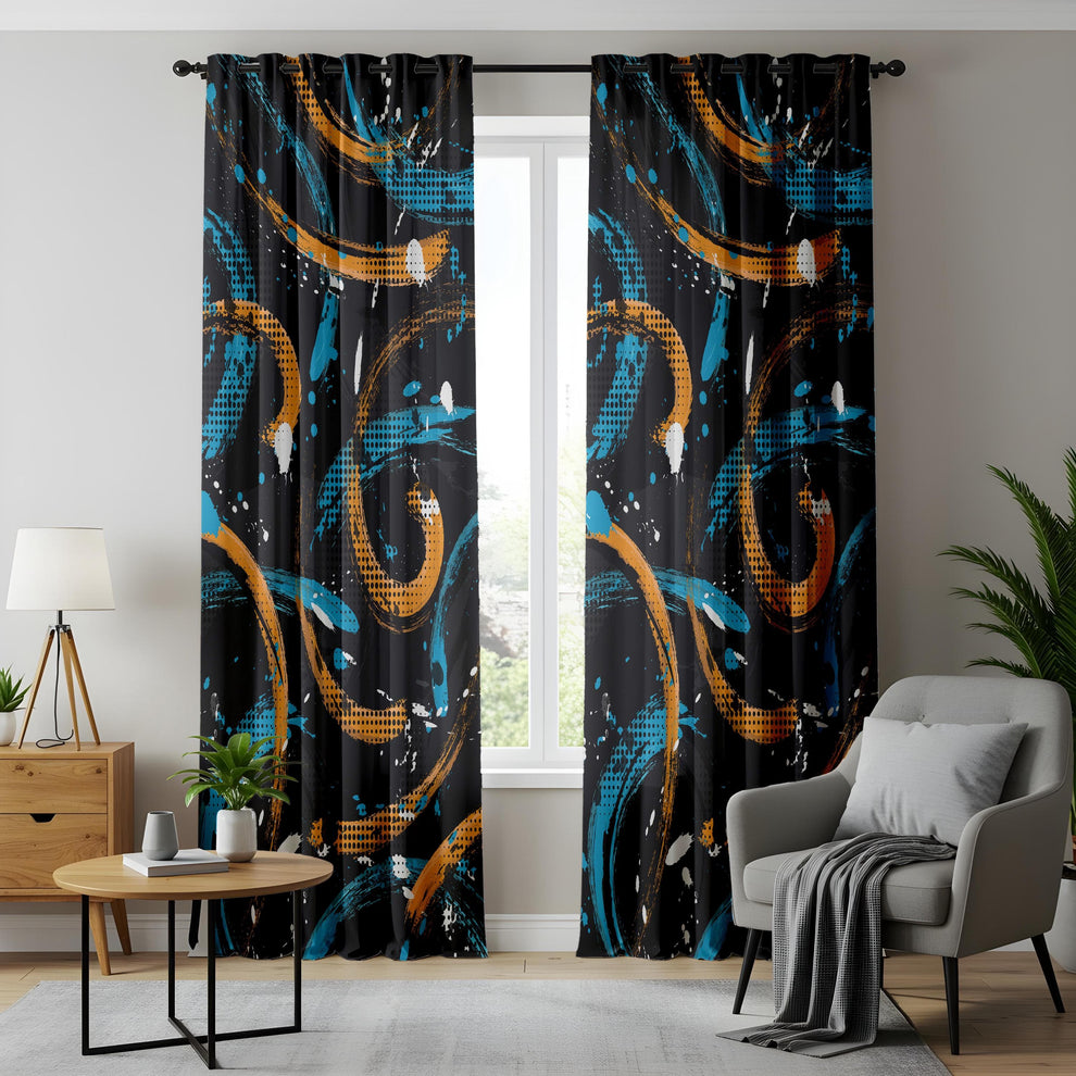 Urban Graffiti Curtains – Black & Gold Brushstroke Art Drapes