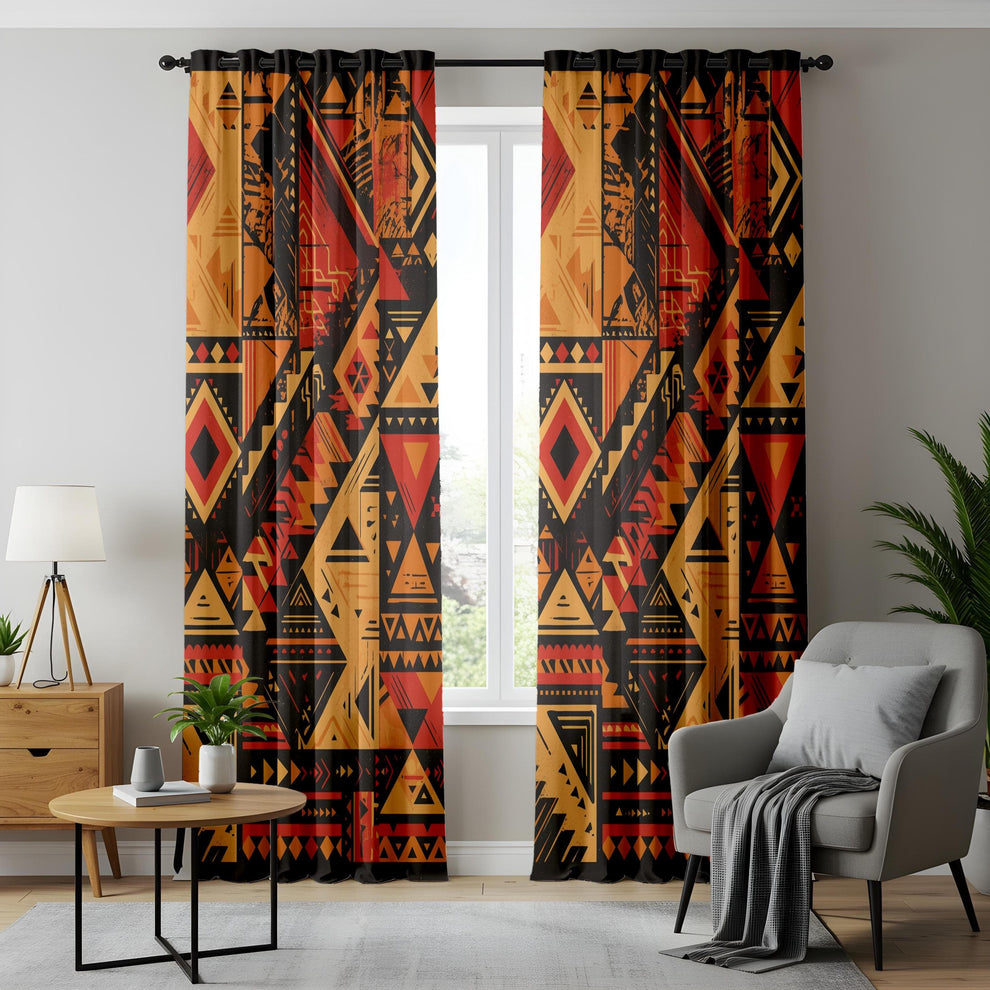 Aztec-Inspired Curtains – Bold Red and Black Geometric Drapes for Boho Southwestern Interiors