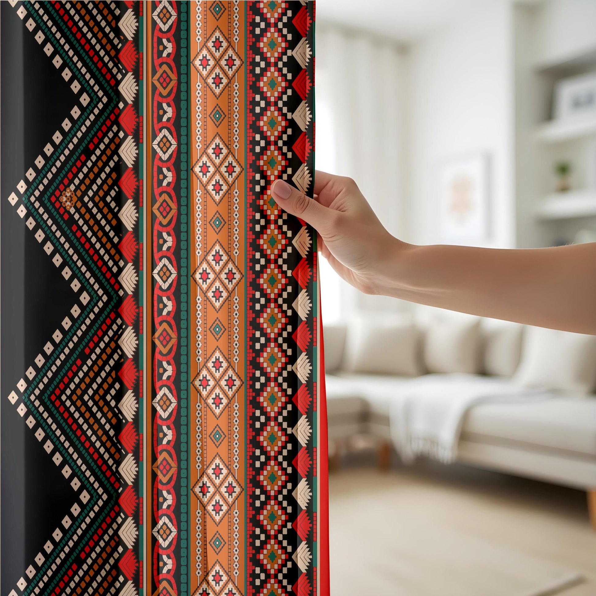 Aztec Patterned Curtains, Vibrant Red & Orange Living Room Drapes