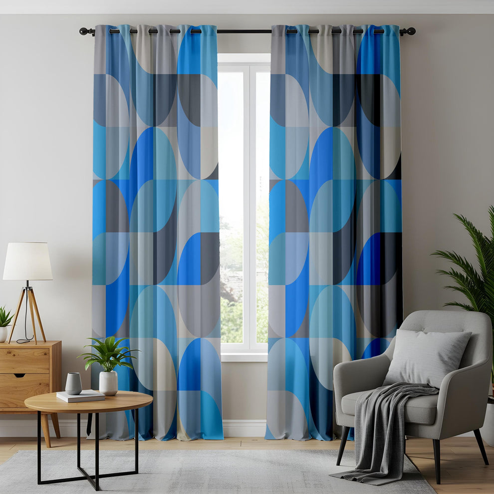 Blue Geometric Curtains – Modern Half-Circle Pattern Drapes for Living Room Decor