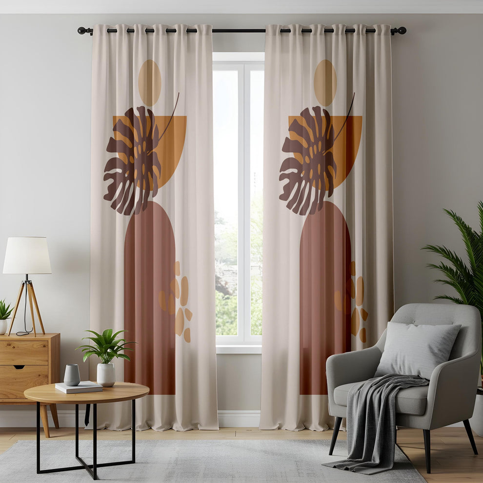 Boho Abstract Monstera Curtains – Earth Tone Geometric Drapes