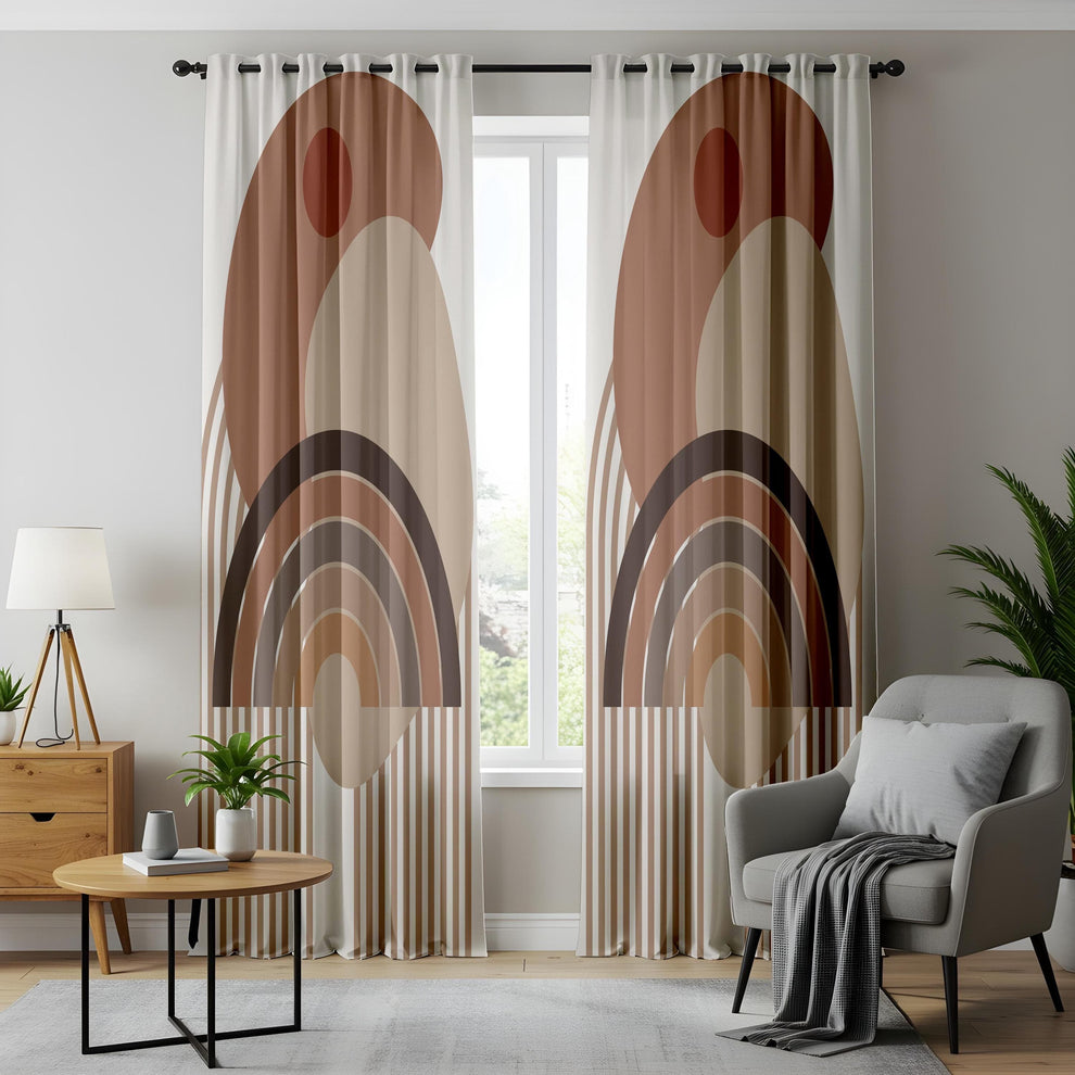 Boho Geometric Abstract Curtains – Earth Tone Rainbow Drapes for Modern Scandinavian Décor
