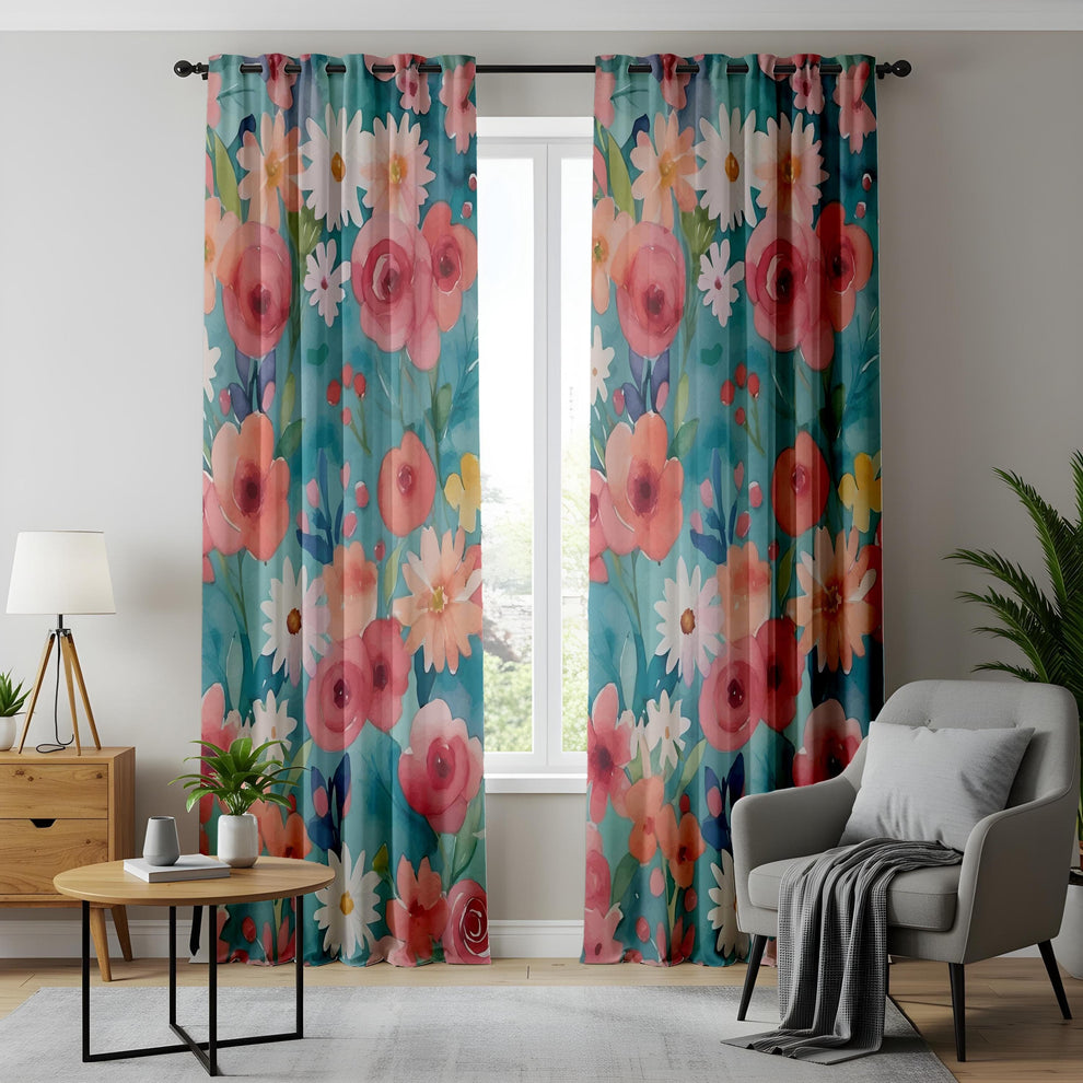 Soft, stylish, and full of whimsy—these Boho Pastel Floral Curtains blend delicate daisy and rose motifs with a soothing teal background. Their watercolor aesthetic and modern cottage feel make them the perfect choice for cozy, laid-back interiors that love a touch of floral flair.