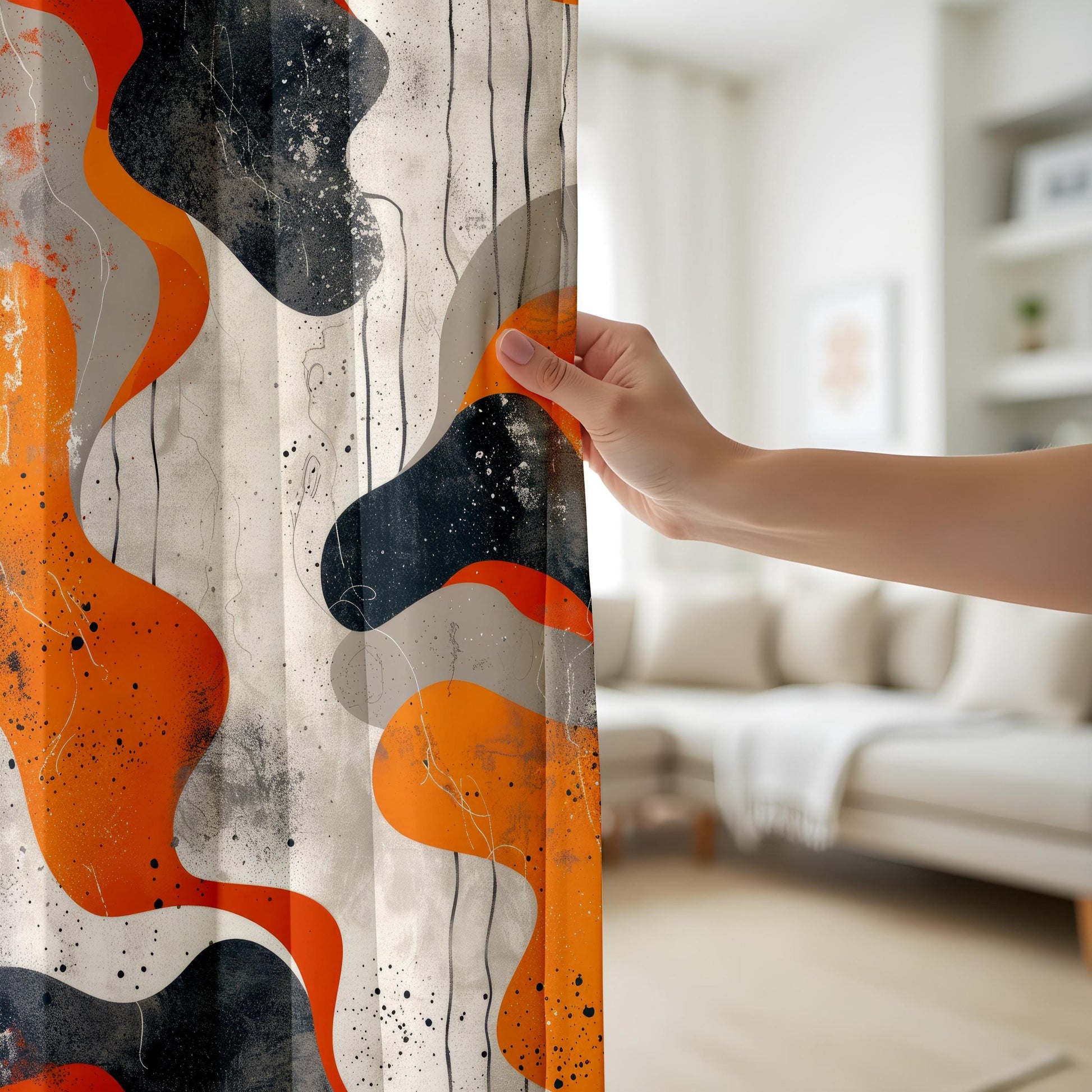 Abstract Modern Living Room Curtains, Orange and Grey Contemporary Drapes