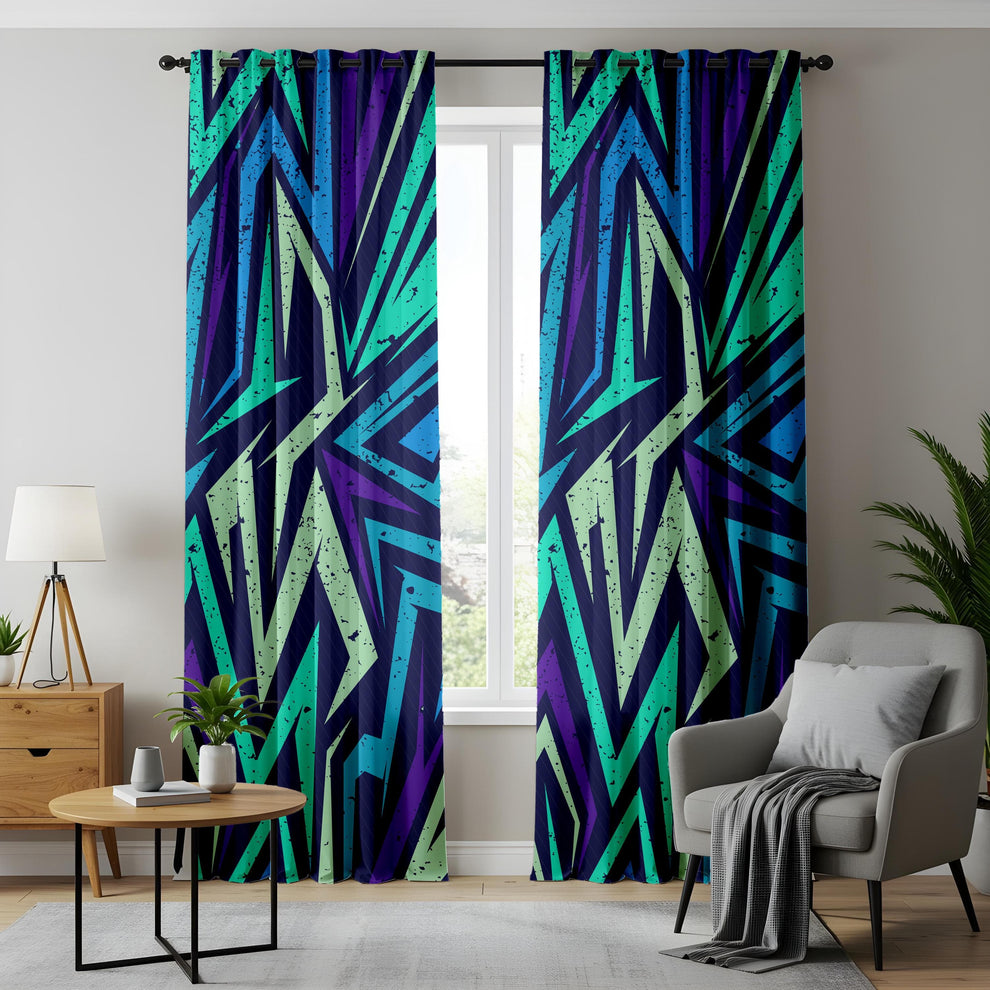 Neon Zigzag Curtains – Urban Graffiti Geometric Drapes