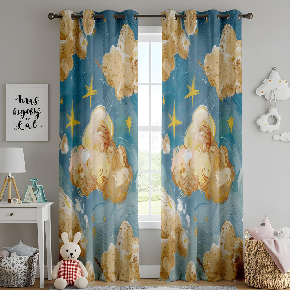 Celestial Cloud and Star Curtains for Kids Room, Blue Sky Inspired Window Drapes