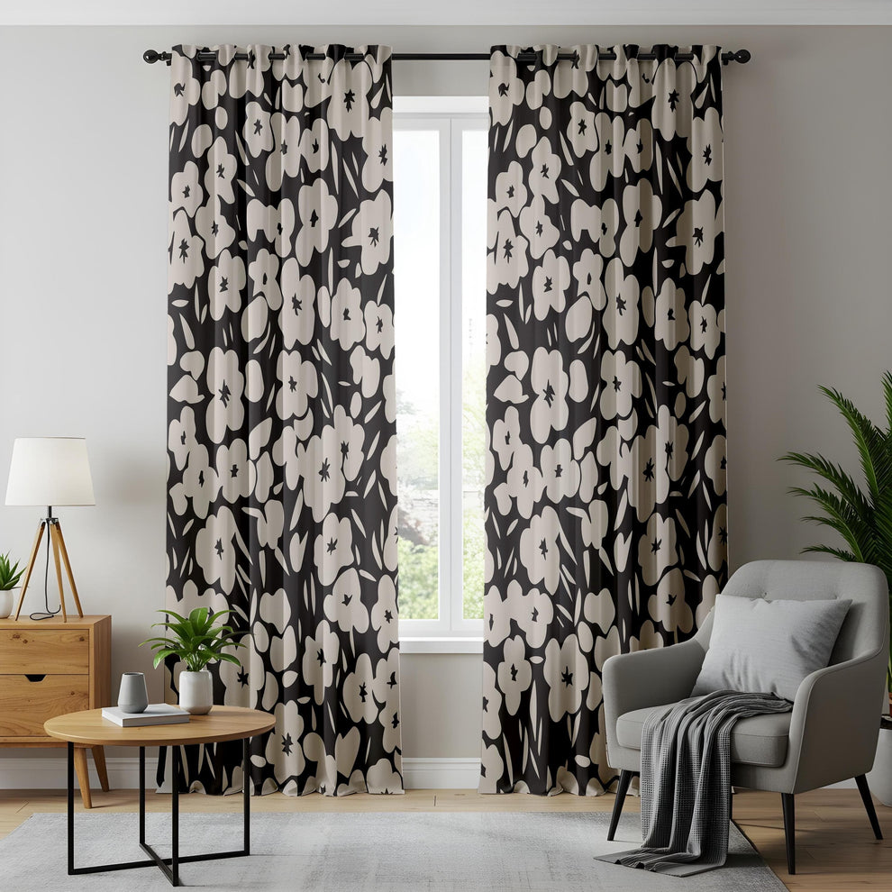 Modern Monochrome Curtains – Bold Black & White Botanical Drapes