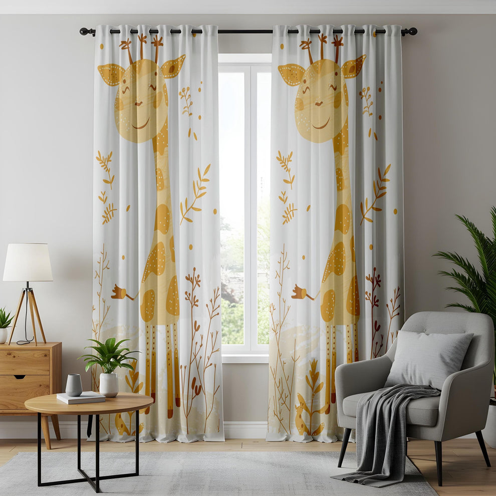 Cute Giraffe Nursery Curtains – Safari Animal Print Drapes for Baby and Kids Room