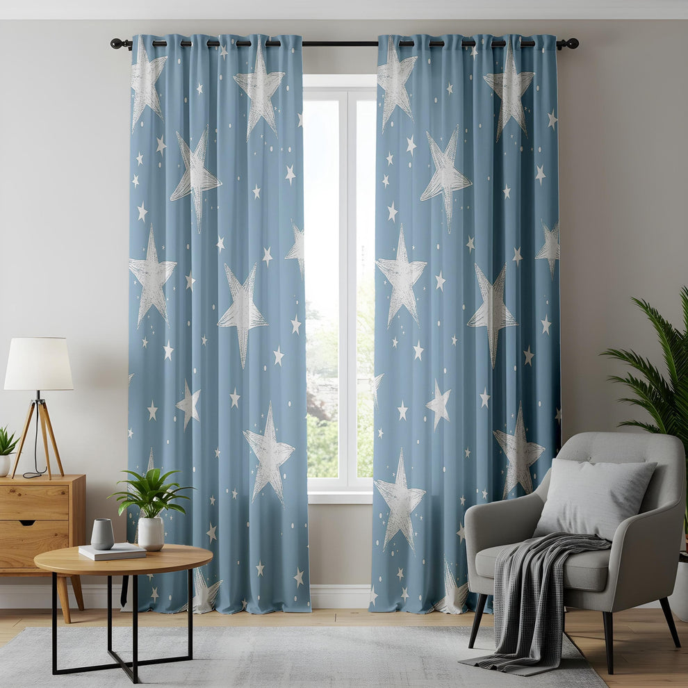 Dreamy Sky Star Window Curtains, Soft Blue & White Celestial Drapes