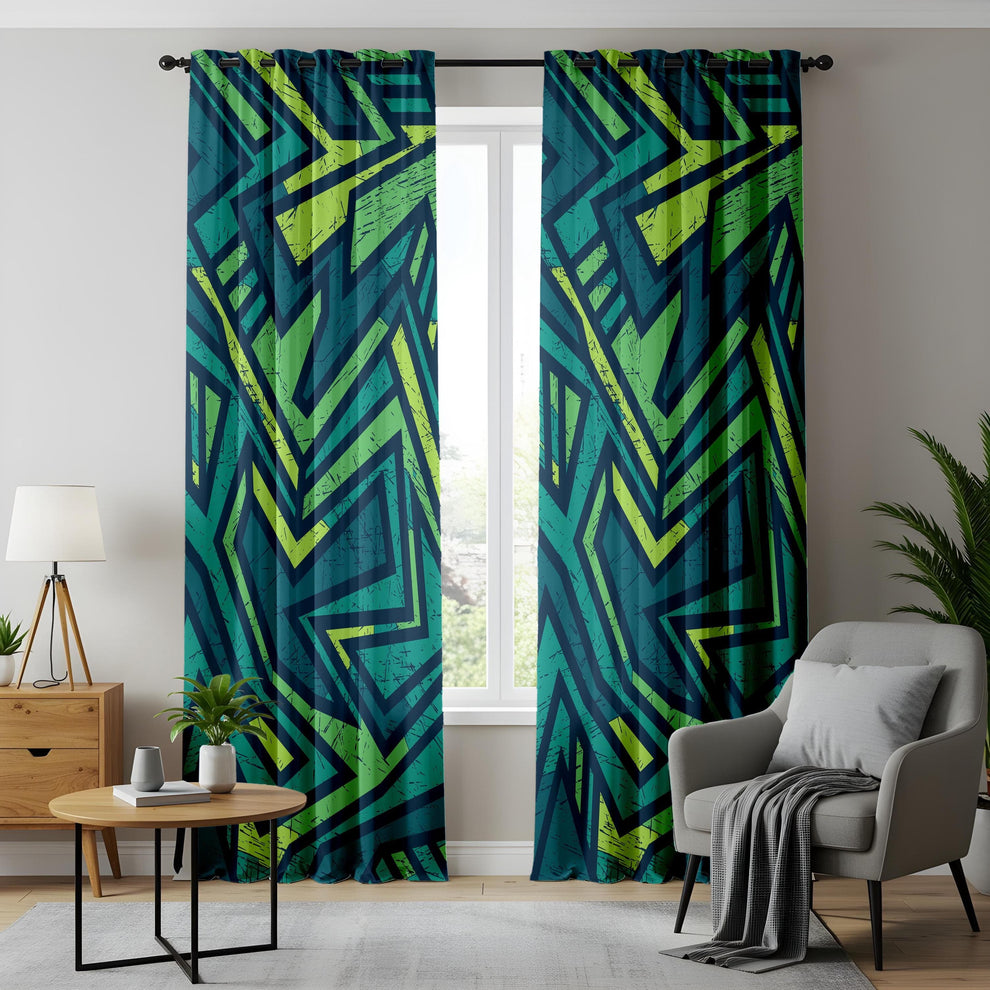 Urban Graffiti Curtains – Neon Geometric Street Art Drapes