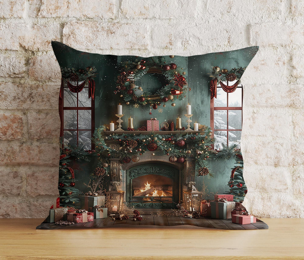 Elegant Fireplace Christmas Cozy Decorative Cushion Covers