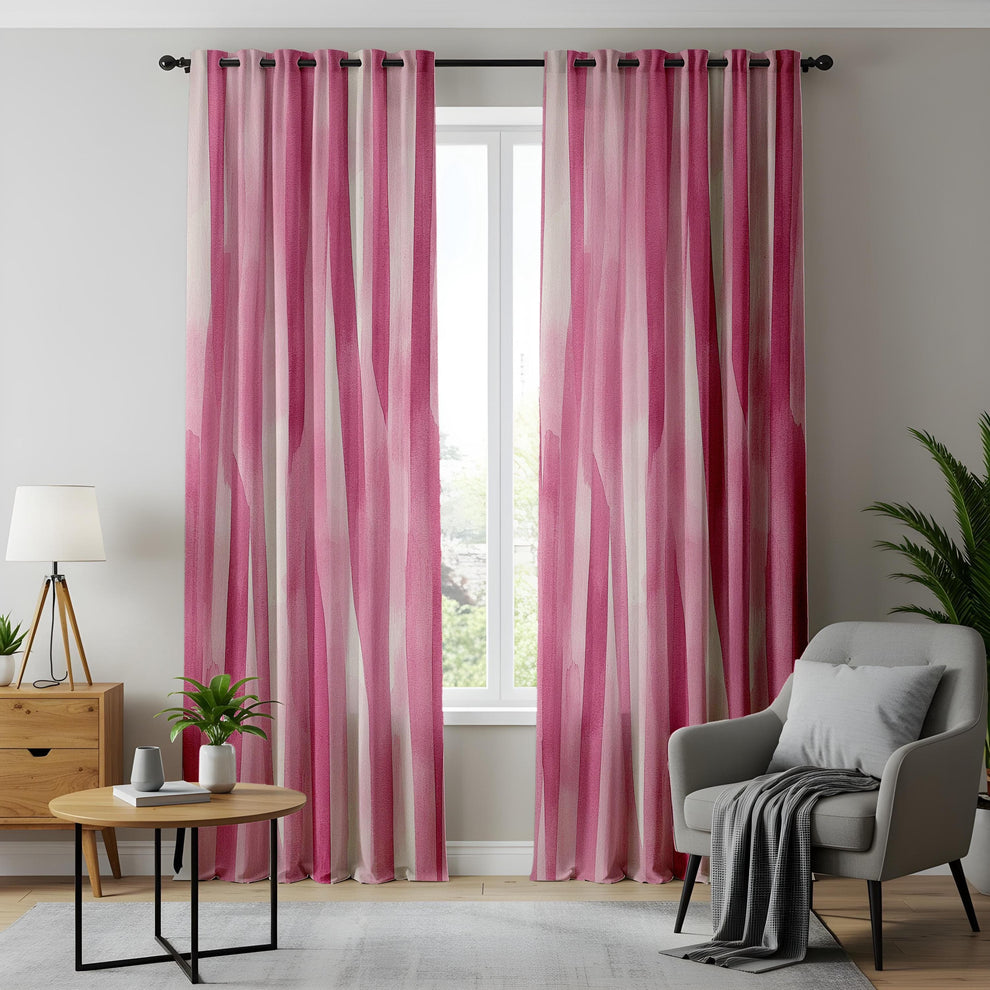 Elegant Pink and White Abstract Watercolor Curtains, Modern Boho Chic Drapes