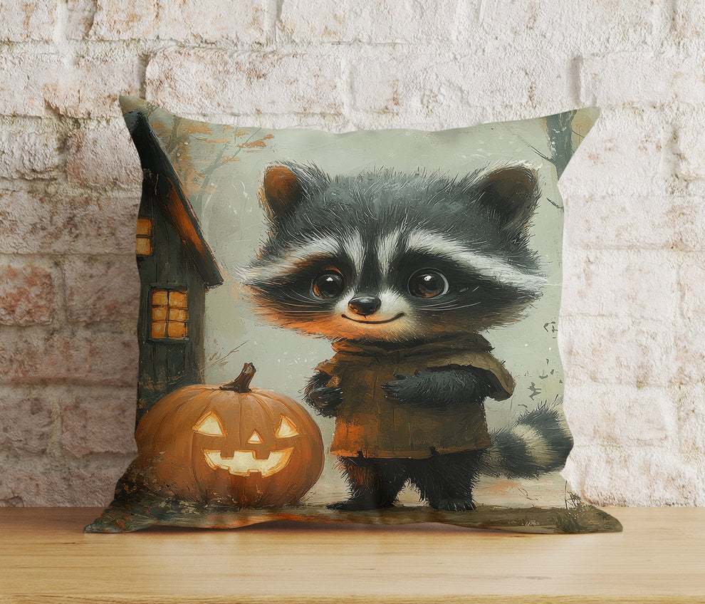 Fall Raccoon Halloween Pumpkin and Woodland Cushion Covers