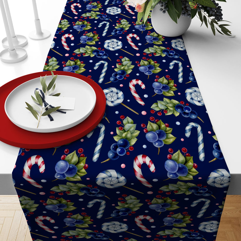 Festive Christmas Table Runners with Trees, Pine Cones & Holiday Treats