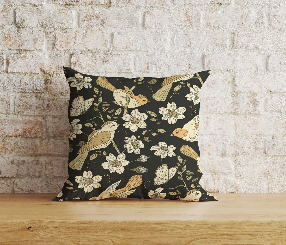 Floral Birds Cushion Cover Black Bird Flower Pillowtop