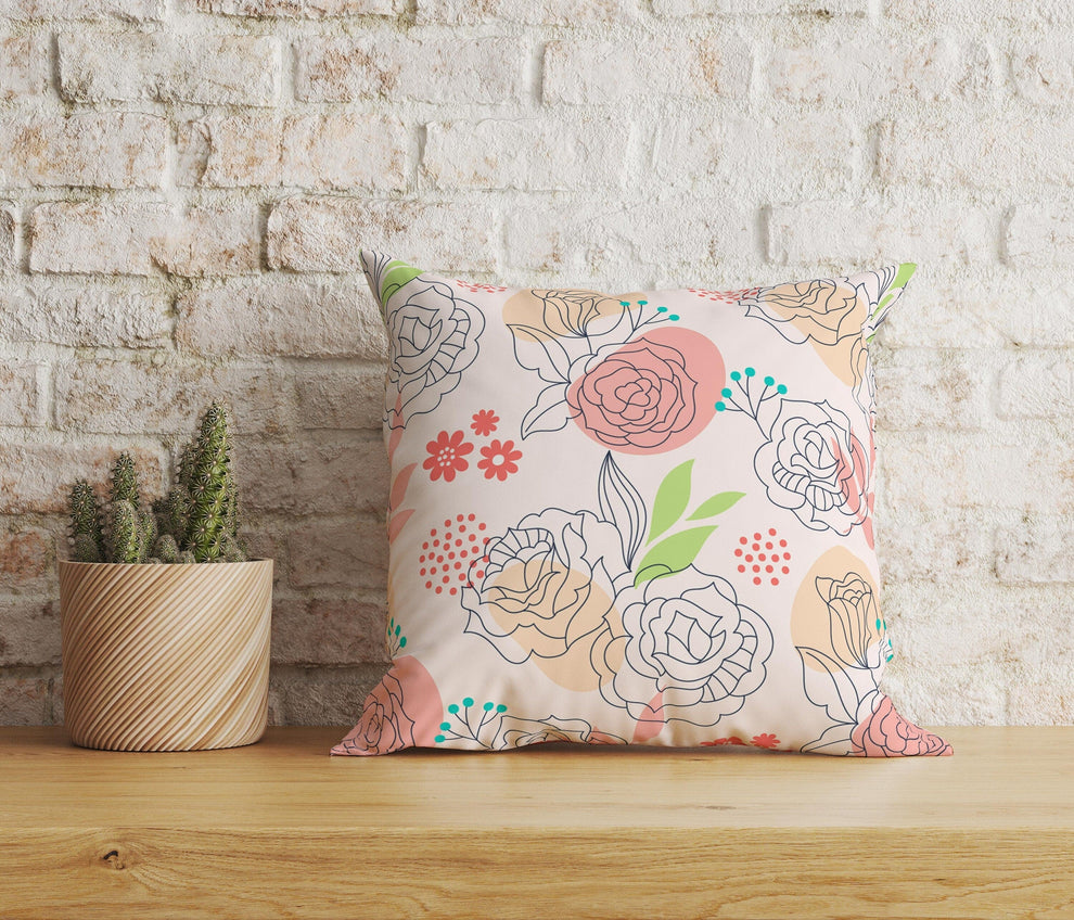 Floral Pattern Cushion Cover Rose Tulip & Daisy Pillowcase