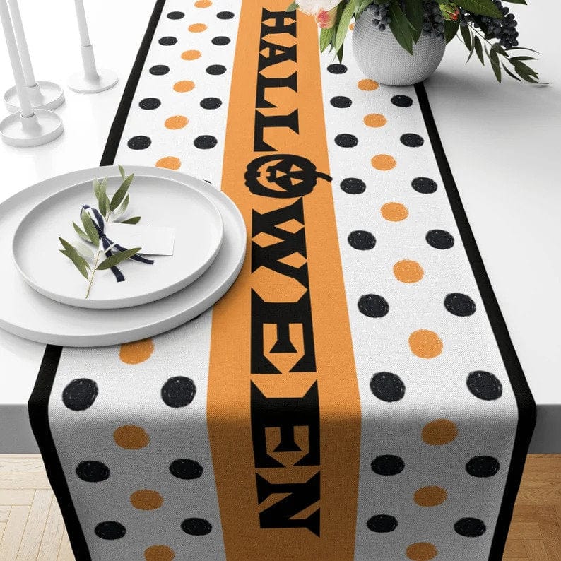 Halloween Table Runner Polka Dot October Kitchen Runner Orange & White Tablecloth