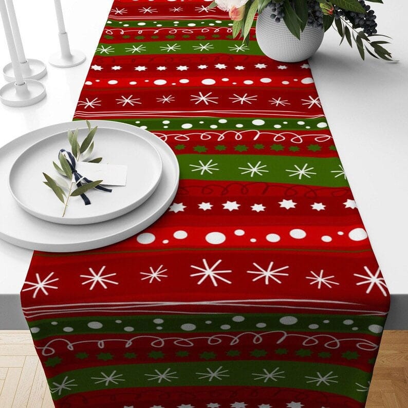 Joyful Christmas Red New Years Kitchen Table Runner