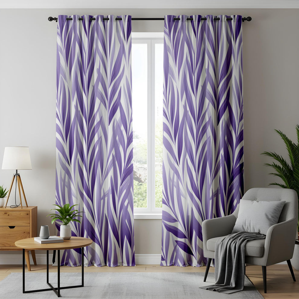 Lavender Dreams Living Room Curtains, Elegant Purple Leaf Pattern