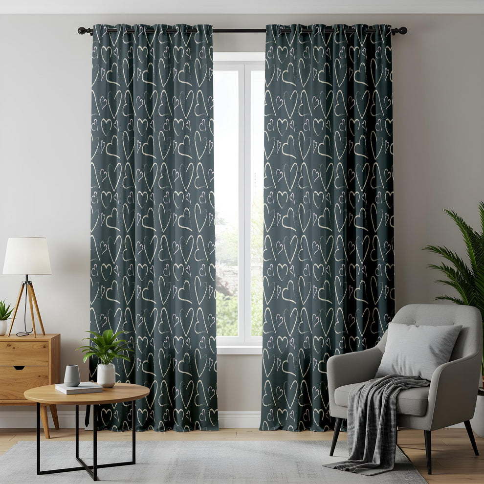 Create a subtle and romantic atmosphere in your home with these Minimalist Heart Print Curtains. Designed with a dark gray background and delicate white hand-drawn hearts, these drapes add a modern yet cozy touch to any living room, bedroom, or romantic space.