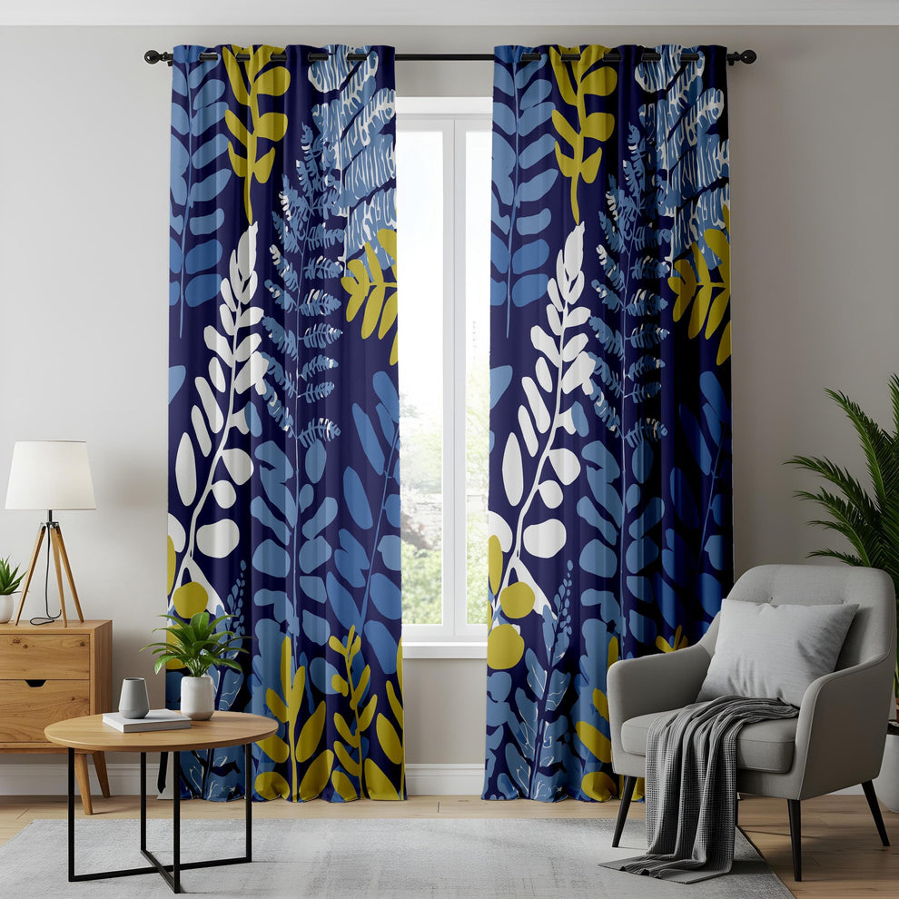 Tropical Leaf Curtains – Bold Blue Botanical Drapes