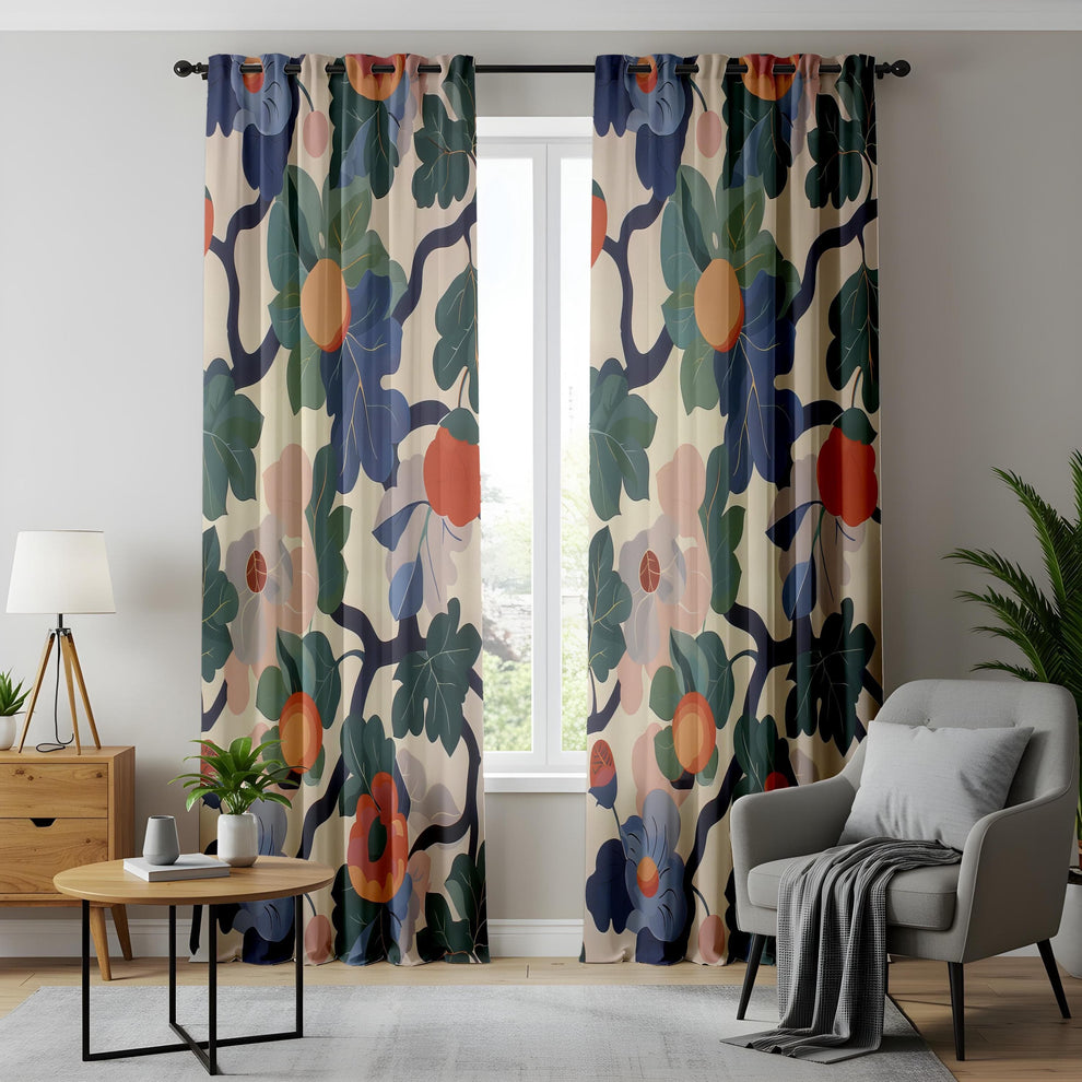 Bring a touch of nature into your home with these Botanical Retro Floral Curtains, featuring a stunning blend of lush leaves, blooming flowers, and ripe fruits in a warm and inviting color palette. With their vintage-inspired yet modern artistic design, these curtains are perfect for boho, eclectic, or contemporary home interiors. Whether used in a living room, bedroom, or kitchen, these nature-inspired window panels add a sense of elegance and tranquility to any space.