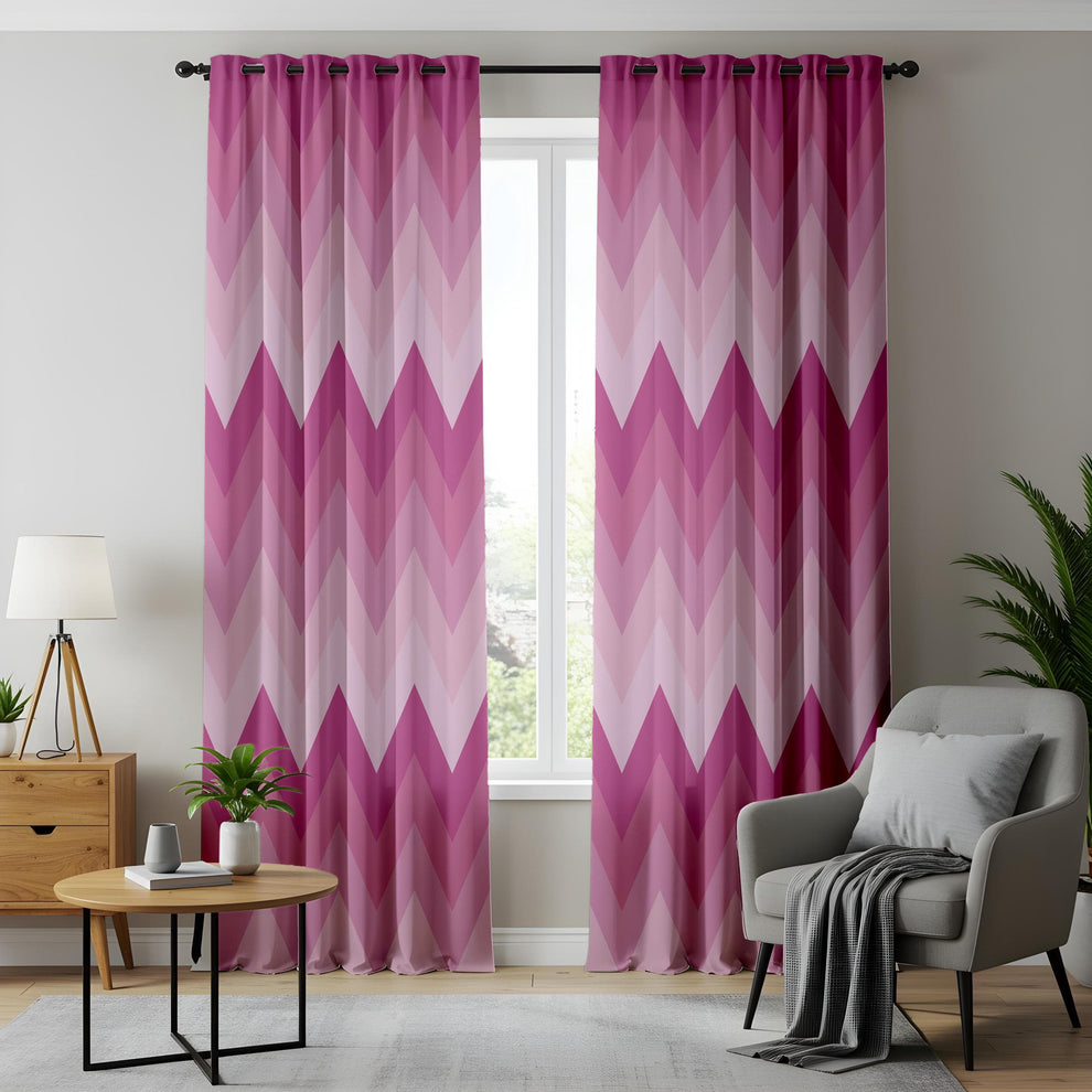Pink Chevron Pattern Curtains – Ombre Zigzag Drapes for Bold and Modern Feminine Interiors