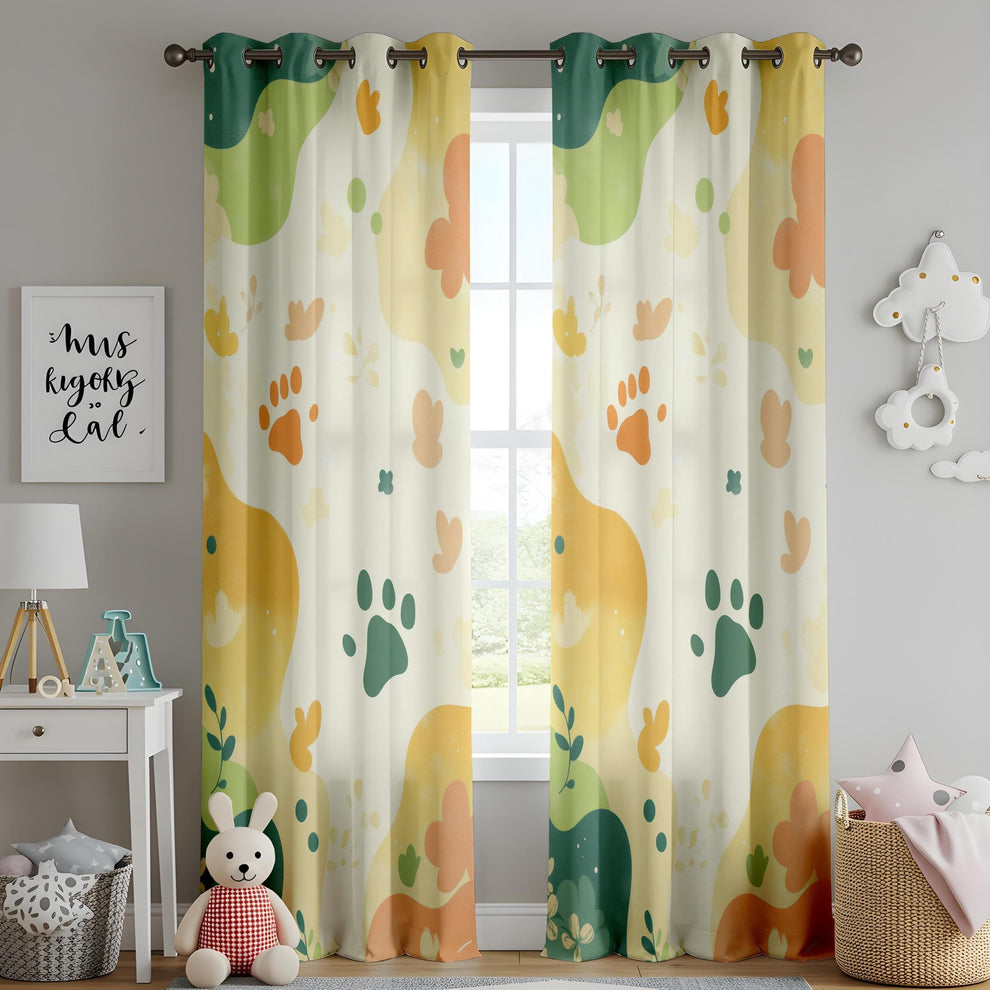 Add a delightful touch to your living room with these Playful Paw Print Living Room Curtains, blending charming paw prints with vibrant floral accents in shades of green, orange, and yellow. This whimsical design brings a cozy, pet-inspired vibe to your space, perfectly suited for animal lovers and those seeking a cheerful yet stylish update. These curtains effortlessly combine fun and elegance for a unique home decor statement.