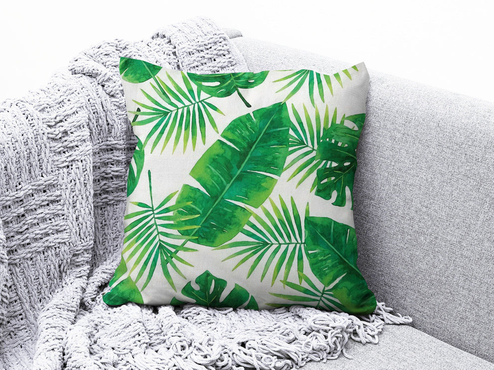 Potherb Palm Leaves Print Spring Decoration Cushion Cover