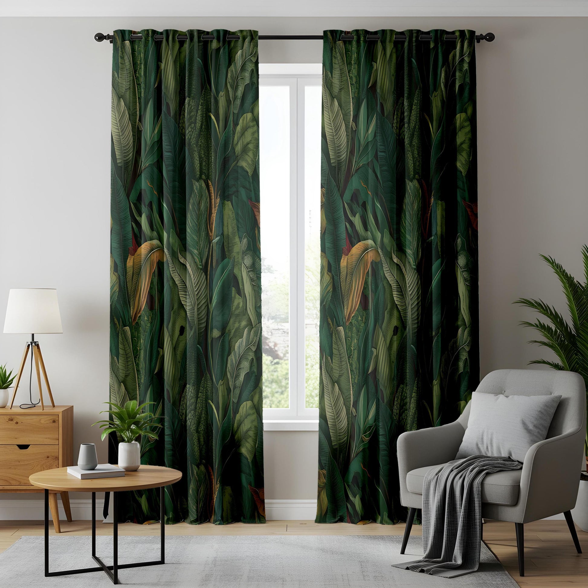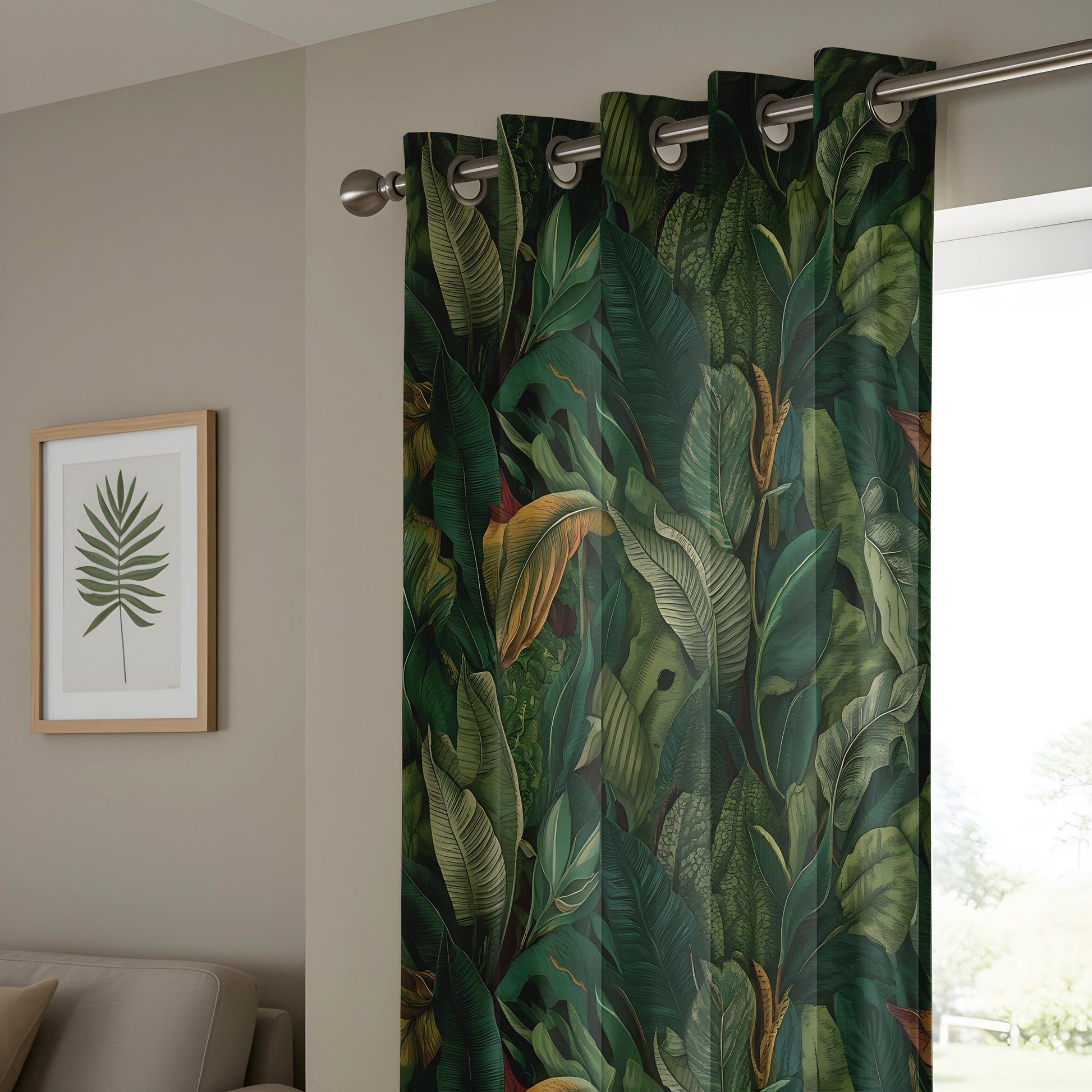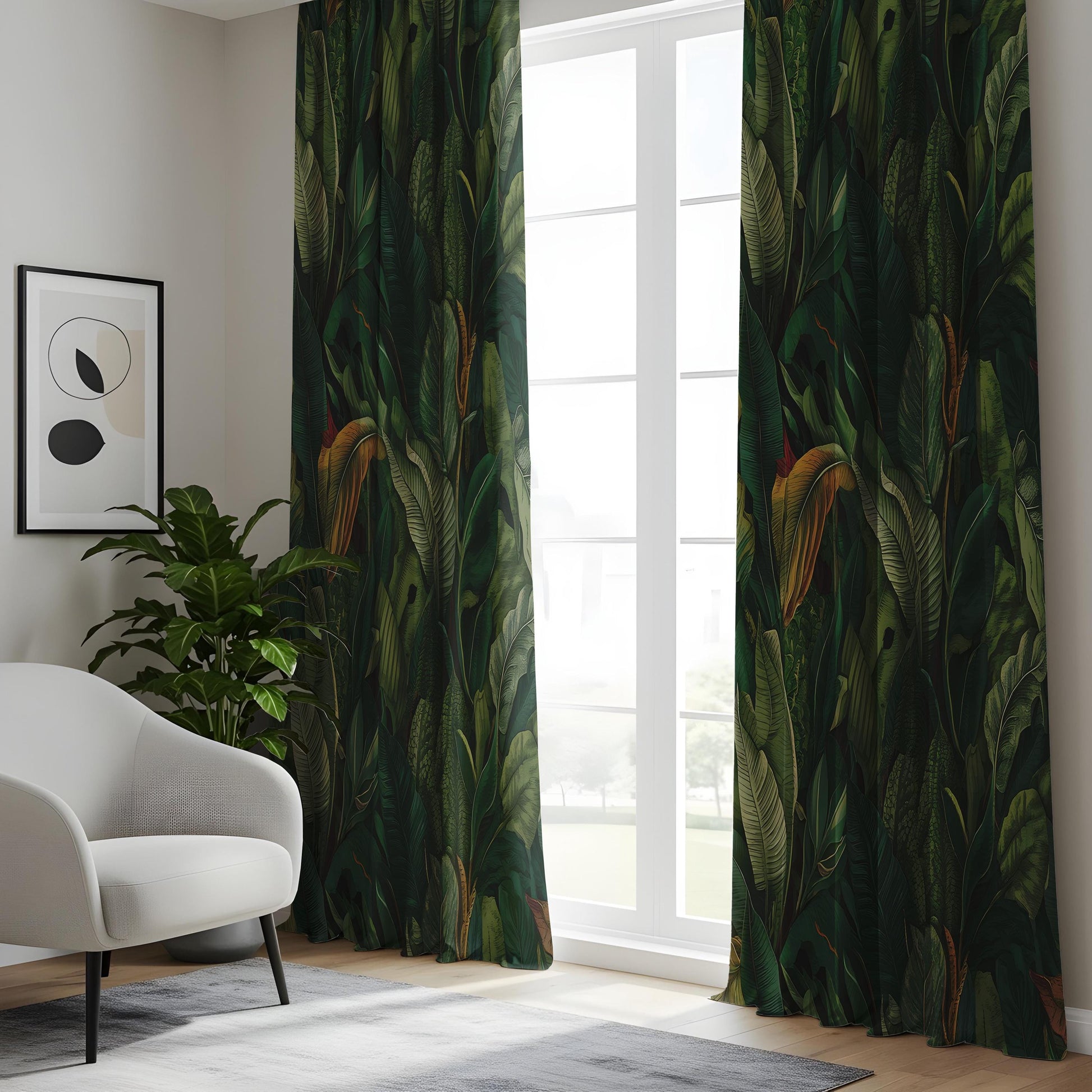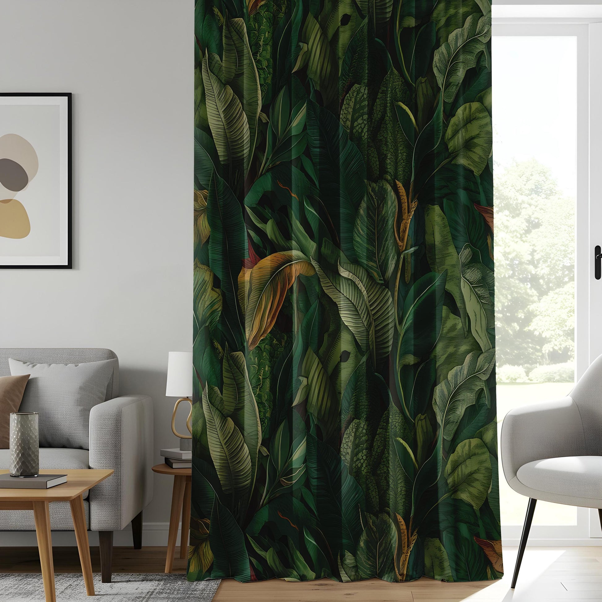 Luxury Jungle Curtains – Deep Green Botanical Leaf Drapes