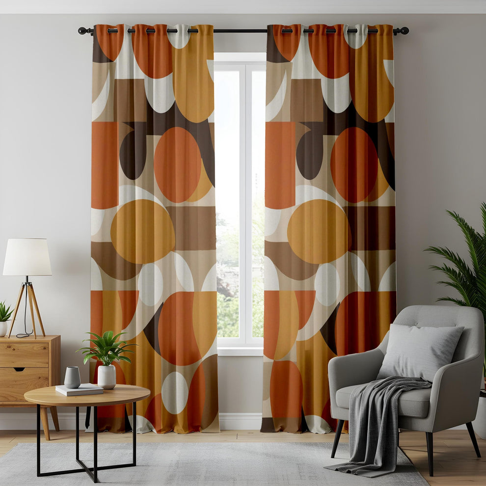Retro Circle Print Curtains Modern Geometric Patterned Drapes