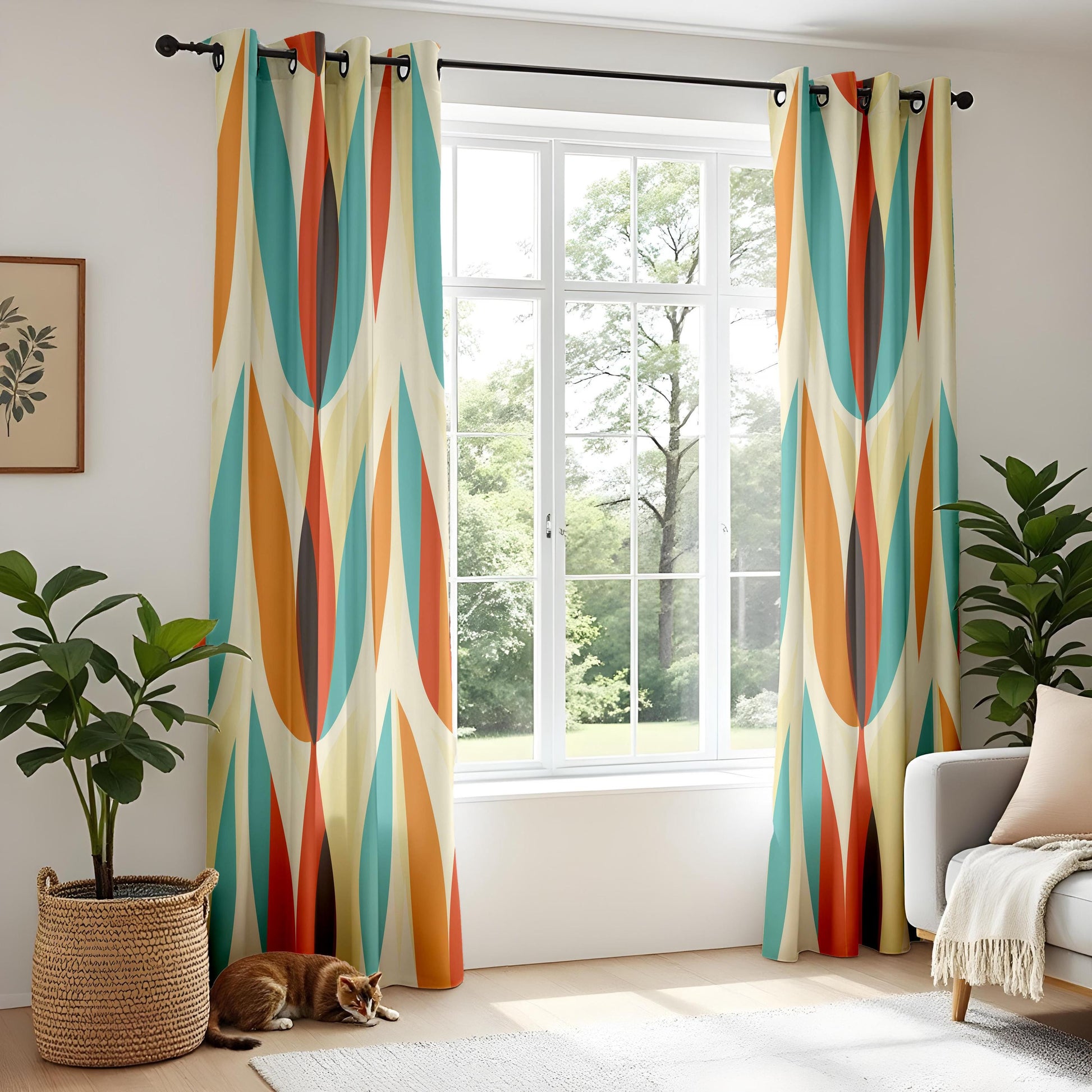 Add a burst of vintage charm to your space with these Retro Geometric Living Room Curtains. Featuring an eye-catching mid-century oval pattern in bold shades of orange, teal, mustard, and black, these drapes bring personality and style to any room. Perfect for retro-inspired interiors or modern spaces craving a playful twist, they instantly elevate your home with nostalgic flair.