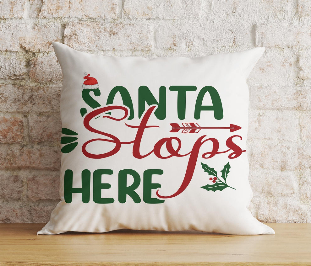 Santa Stop Here Red Christmas Decor Cushion Cover