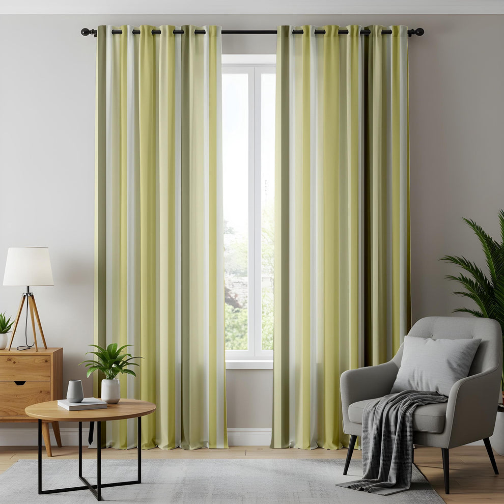 Striped Yellow Blackout Curtains – Soft Modern Drapes for Timeless Contemporary Interiors