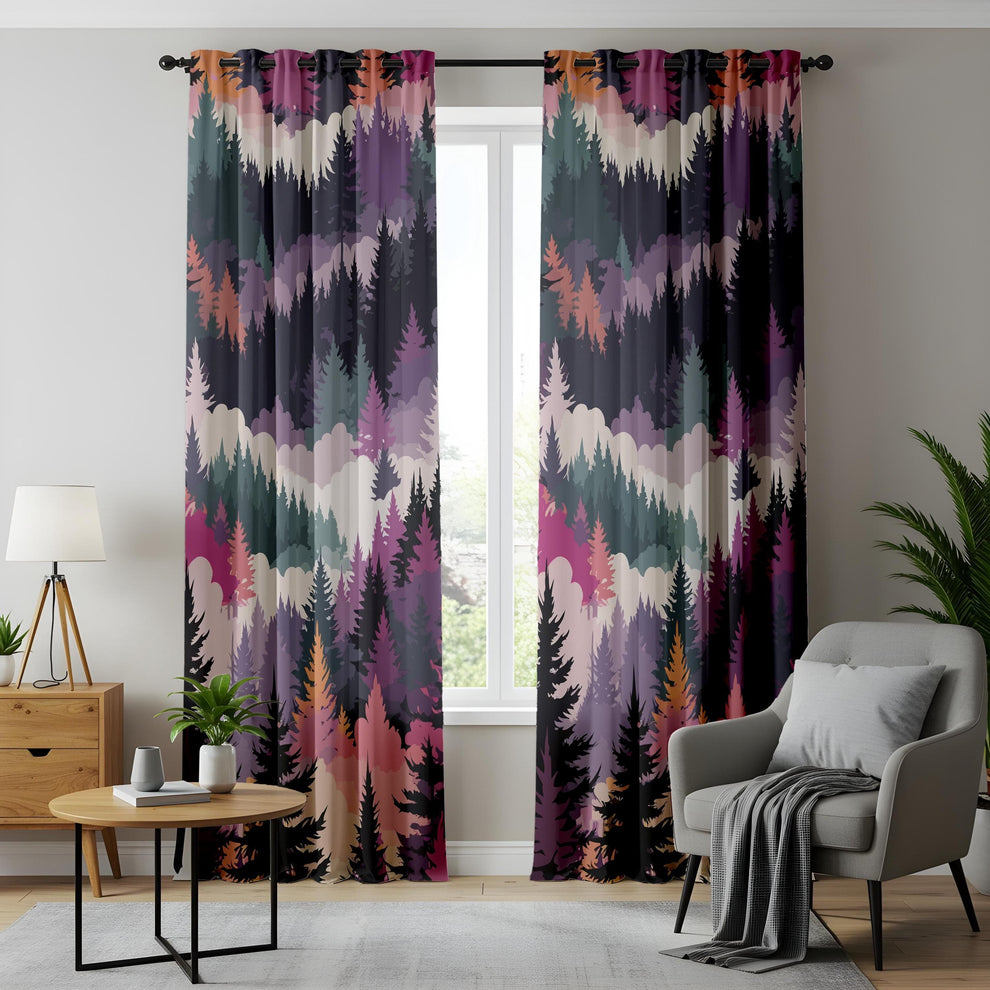 Vibrant Tree Pattern Curtains – Purple and Pink Forest Drapes for Cozy Rustic Woodland Interiors