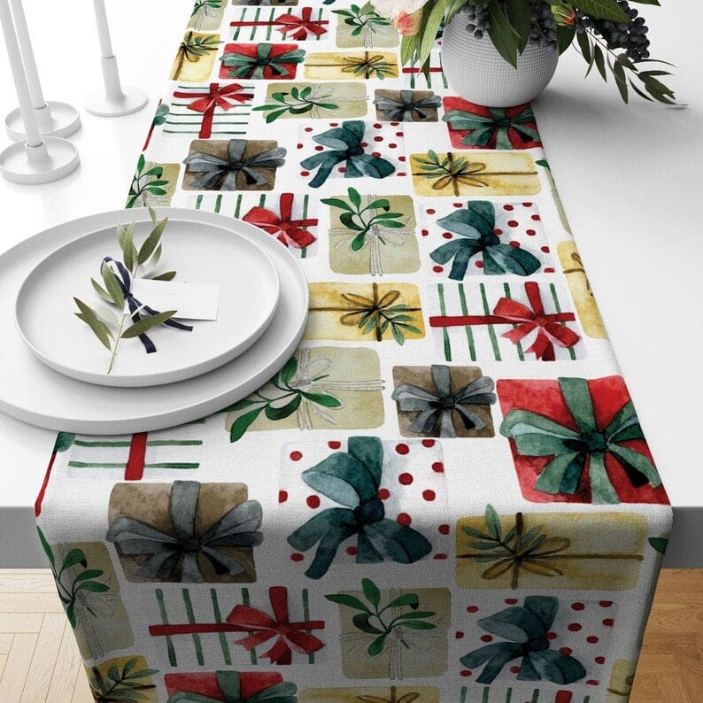Xmas Gift Box Red Green and Blue Xmas Decor Table Runner