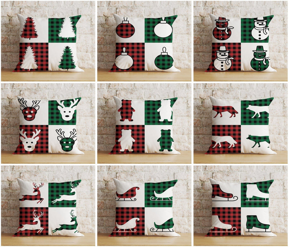 Xmas Wolf Xmas Tree Red & Green Checkered Cushion Cover