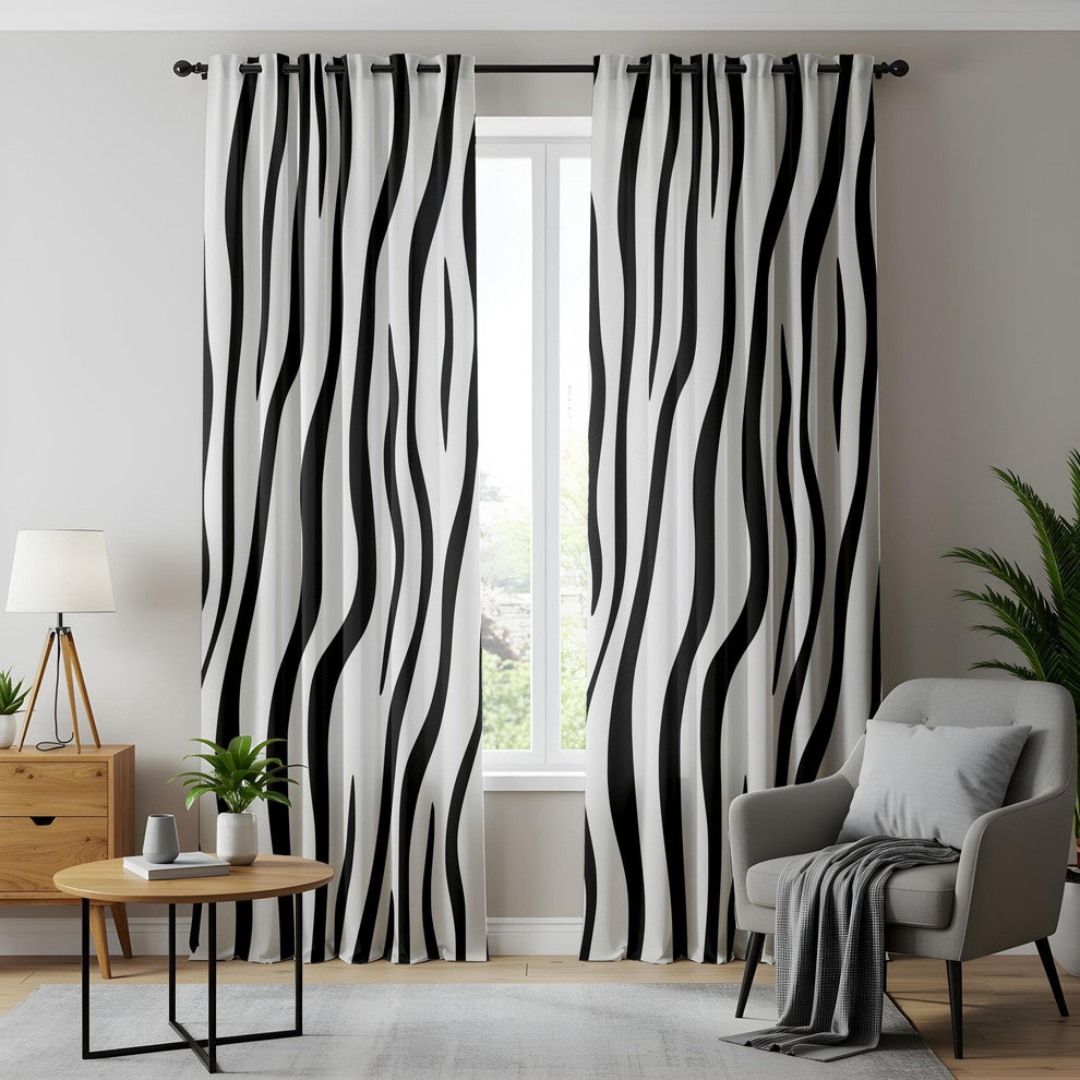 Zebra Stripe Black and White Pattern Curtains, Bold Animal Print Window Drapes